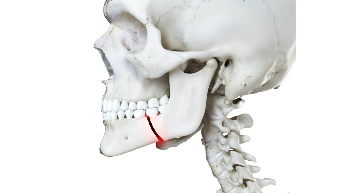 A broken jaw is no fun. Basically, there’s nothing you can do for this other than take some over the counter painkillers and put some ice on it until you can get to the ER. You will likely need a maxillofacial surgeon for this and an surgery as soon as possible.